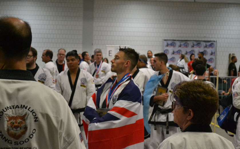 Leicester Tang Soo Do instructor Mr. Dearnley represented Team GB at the World Championships in Greenboro, North Carolina in July 2018. Mr. Dearnley was able to place on the podium in all 3 categories - taking a bronze medal in weapons forms, a silver medal in open hand forms (hyungs) and a gold medal in sparring!